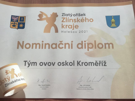 V neděli 10. října se žáci naší školy Diana Valentová, Jennifer Ghoubrial a Vratislav Švejcar pod vedením pana učitele Vítězslava Tesaříka zúčastnili krajského kola talentové soutěže Zlatý oříšek v Holešově. Jedná se o akci určenou pro nejšikovnější děti České republiky, přičemž se účastní chlapci, dívky či kolektivy vynikající v různých oborech. Naši žáci se utkali s 12 soutěžícími a předvedli svůj sportovní talent coby vítězové OVOV (Odznak všestrannosti olympijských vítězů). Skákali trojskok a přes švihadlo, dělali kliky a sedy-lehy, to vše do hudby písně Když nemůžeš, tak přidej. Do republikového finále naši soutěžící sice nepostoupili, byli však odměněni dárečky a třešňovým stromem, který si zasadíme na školních pozemcích.